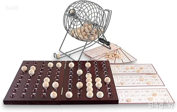 - ▸ Номерирани дървени топки: Топките за бинго са направени от дърво и са ясно номерирани за лесно разпознаване по време на игра. Дървото придава автентично, традиционно усещане на играта, добавяйки нотка елегантност.