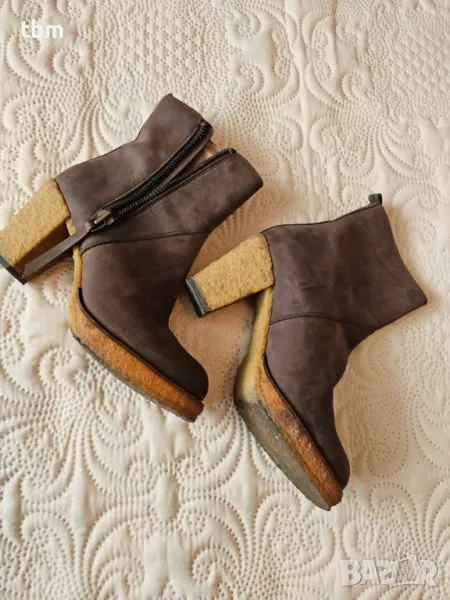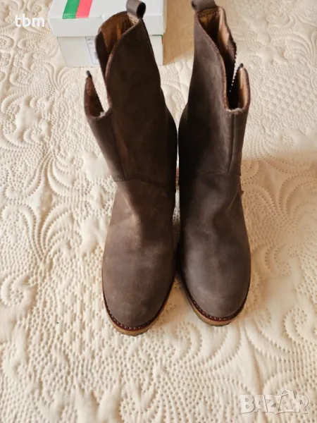 Промо 30лв! Кафяви, велурени боти с подметка от каучук → Обява 48433099