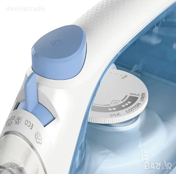 Гладещата повърхност на вашата парна ютия Philips е покрита със специален незалепващ слой за добро плъзгане по всякакви тъкани.