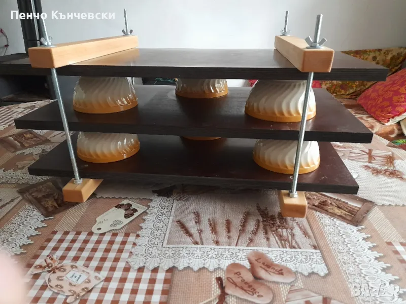 Производство на преси от висококачествен водоустойчив Буков шперплат за всякакви месни продукти. Размери на плотовете 62×32×2см.