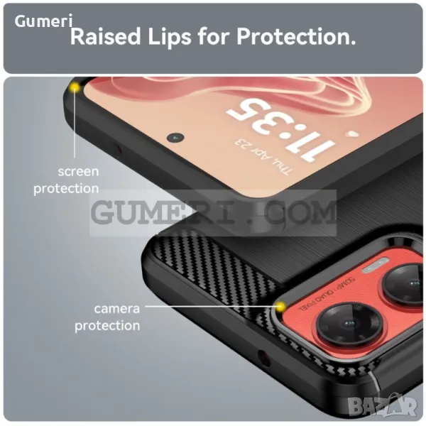 С високи бордове за максимална защита на дисплея.