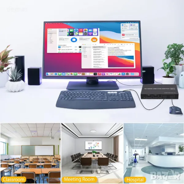 Този HDMI KVM превключвател позволява безпроблемно управление на две устройства (компютър, камера, PS4 и т.н.) с една настройка, като предлага един HDMI изход за дисплеи и четири USB порта за периферни устройства като клавиатури, мишки и устройства. Той поддържа два режима на превключване - чрез бутони или външен контролер - за лесно управление на устройството. Насладете се на зашеметяващо 4K 60Hz видео на големи дисплеи чрез HDMI, предоставяйки висококачествени визуализации без компресия или забавяне. USB портовете позволяват безпроблемно прехвърляне на данни и споделено използване на периферни устройства между устройства, което го прави идеален за офис или отдалечена работа. Имайте предвид, че аудио и видео трябва да се предават през HDMI порта, тъй като USB интерфейсите са само за пренос на данни.