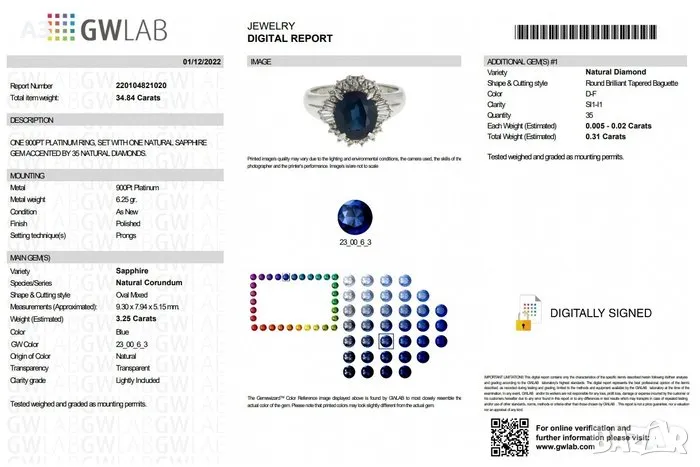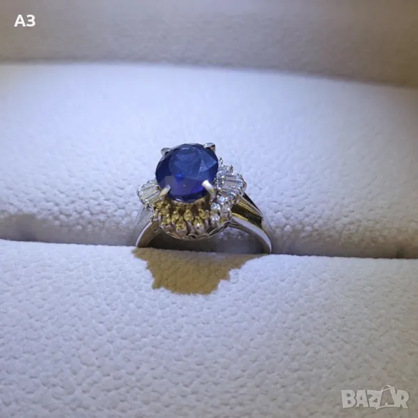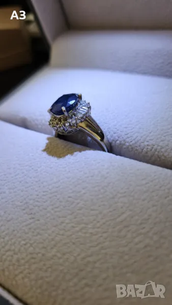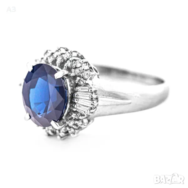Пръстен с 3.56 карата сапфир и диаманти - Платина
