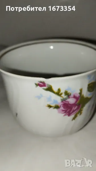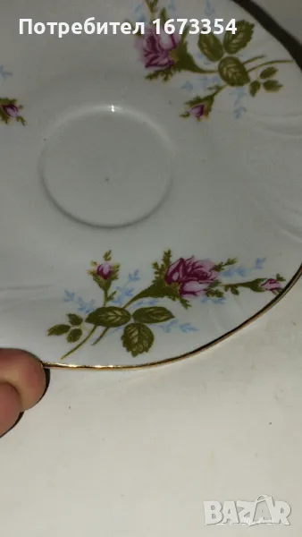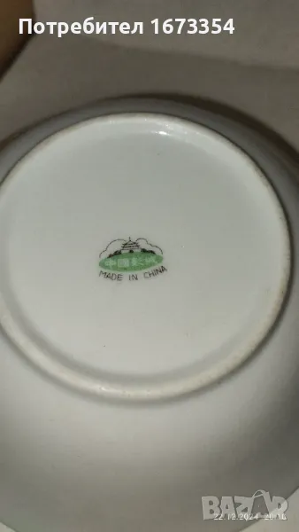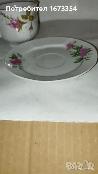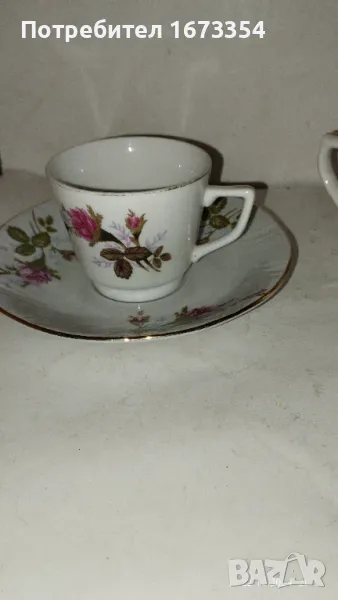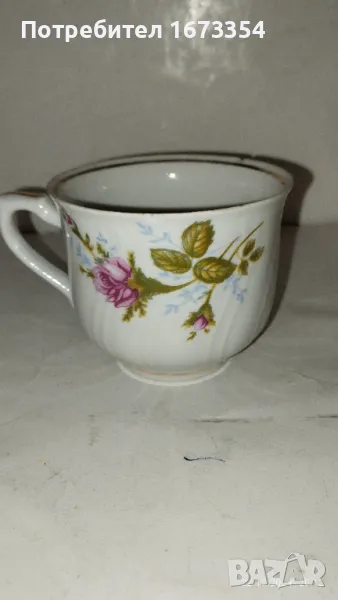 2 )Сет от две чашки голяма и малка+ чинийка с размери ,чинийка ф- 15 см и чашки малка ,вис 6 см и ф- на отвора 7 см,
