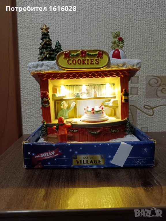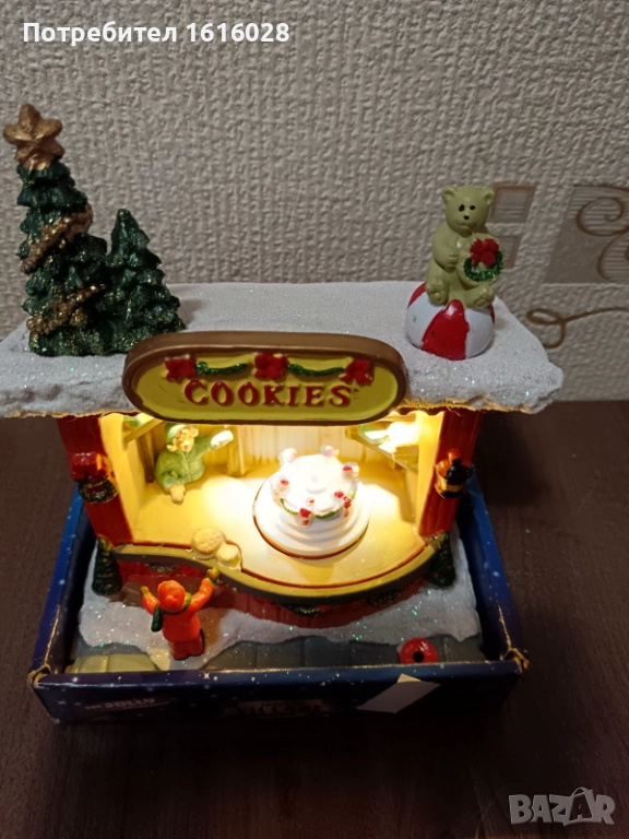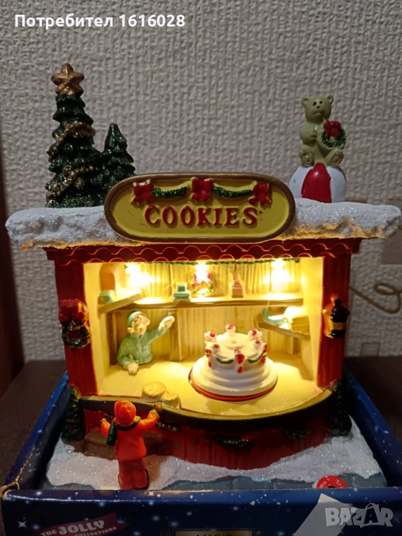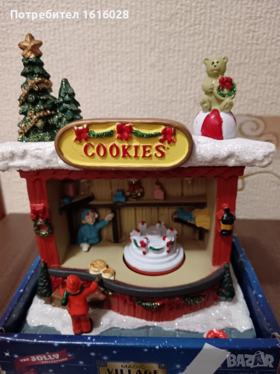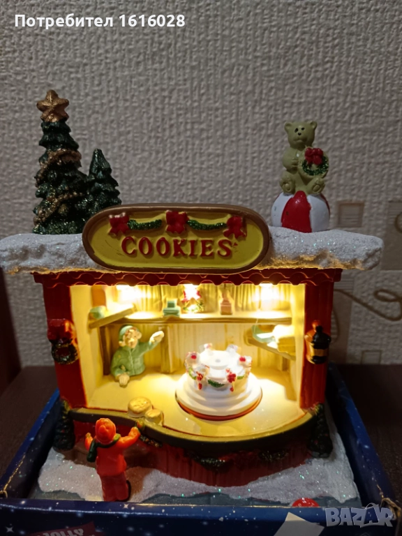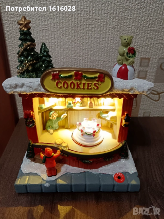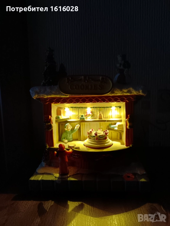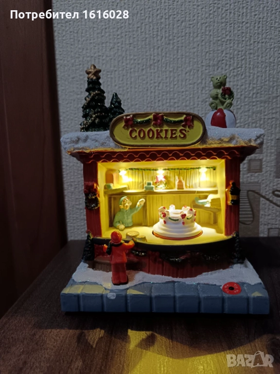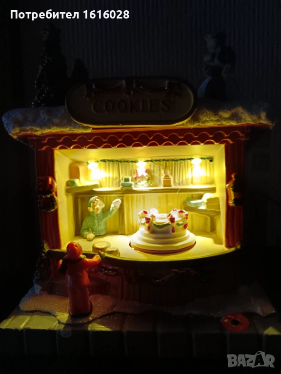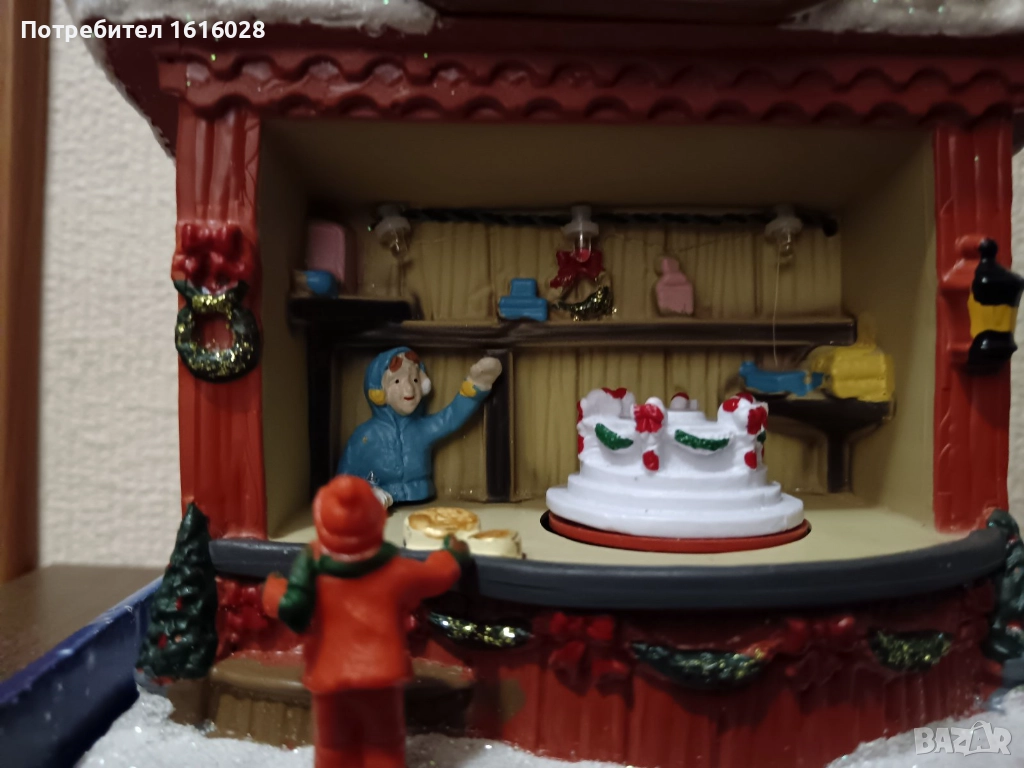 Коледна LED и музикална сцена Магазин за сладкиши с 8 мелодии,светлени и въртяща се торта.