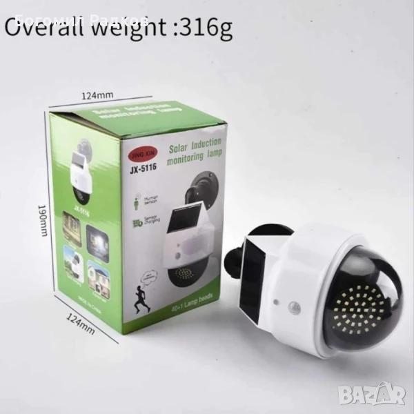 Соларна лампа със сензор за движение и дистанционно управление тип фалшива видеокамера - JX-5116