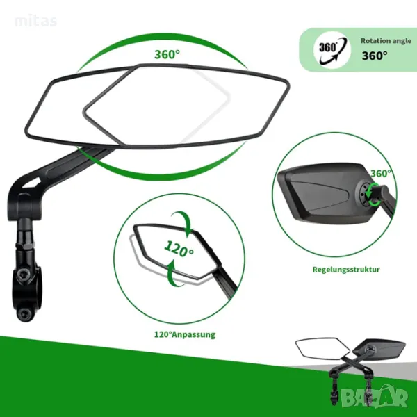 Луксозен комплект странични огледала за велосипед, 150 x 60мм, 360°