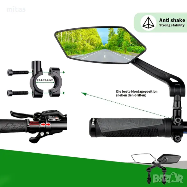 * Универсално закрепване: Лесно се инсталират върху повечето кормила, което гарантира съвместимост с вашия велосипед или скутер.