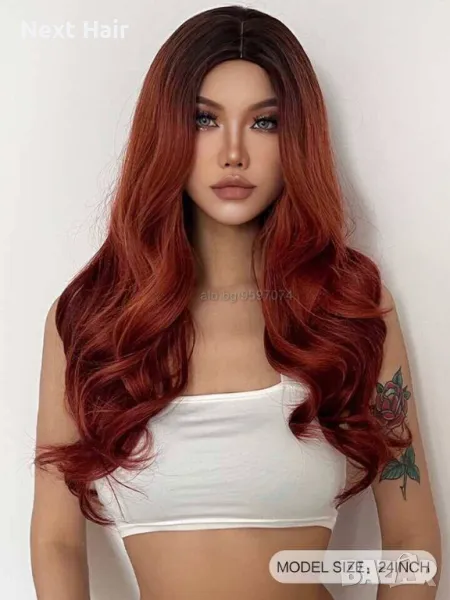 Ефектна омбре оранжева перука с тъмни корени на път → Обява 48437558