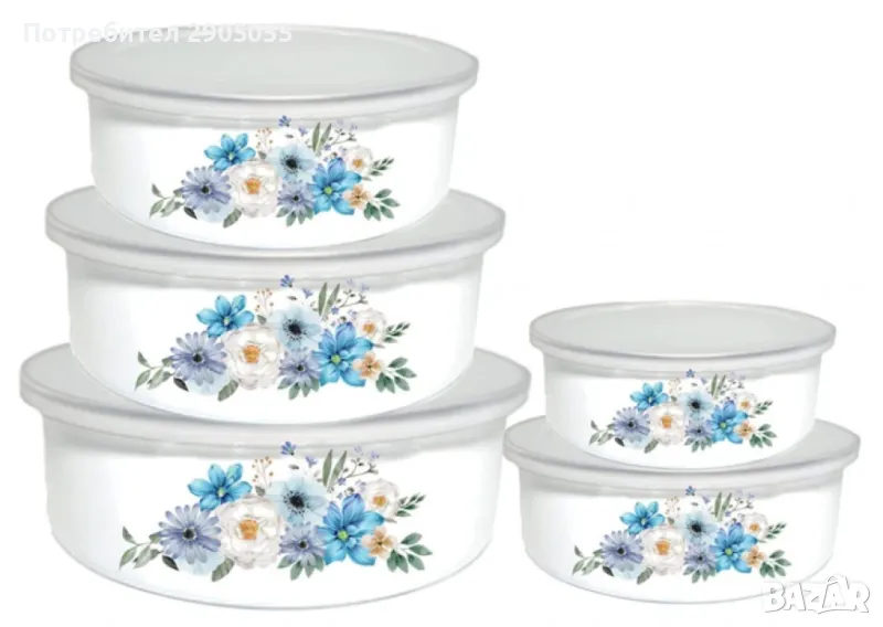 Комплект емайлирани купи за съхранение, снимка 1 - Кутии за храна - 48437609 Комплект емайлирани купи за съхранение, снимка 2 - Кутии за храна - 48437609 1/2
