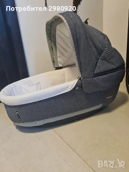 3. Кош за новородено. Кошът е широк и комфортен. Сенникът може да се отваря с цип. Позицията на главата и крачетата може да бъде нагласена едновременно с бутон. Вътрешната подплата може лесно да се сваля и пере. Кошът може да се използва като легълце за новородено бебе до около 6-месечна възраст.