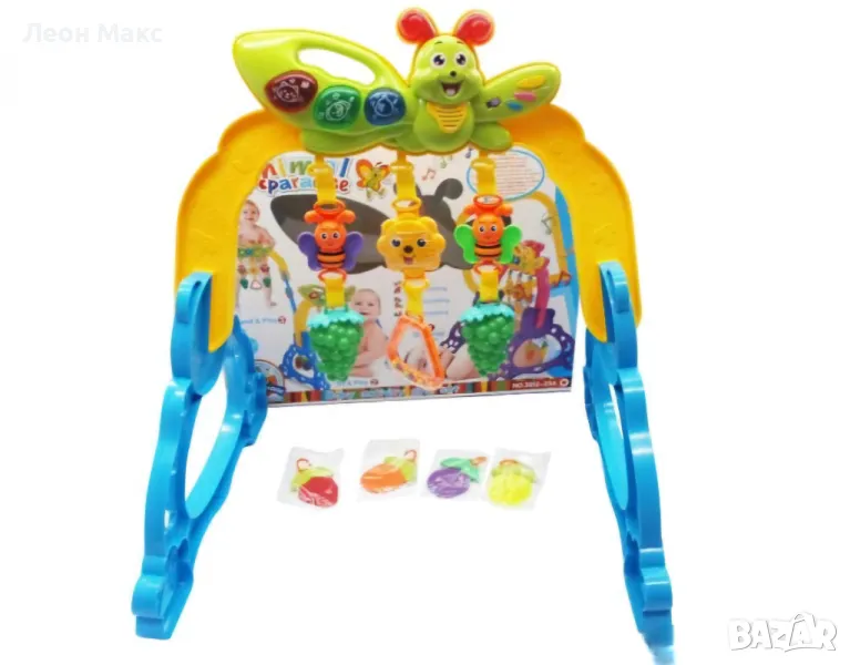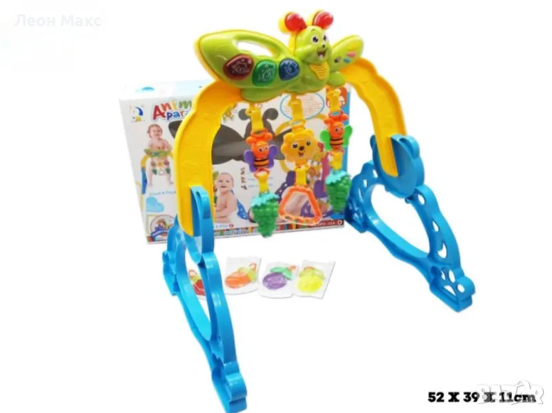 Моделът е със стабилна стойка, а на рамката на стойката има 3 мобилни дрънкалки. Музикален панел.