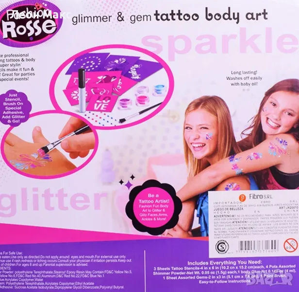 Комплект за татуировки с блясък , снимка 1 - Рисуване и оцветяване - 48438458 Комплект за татуировки с блясък , снимка 2 - Рисуване и оцветяване - 48438458 Комплект за татуировки с блясък , снимка 3 - Рисуване и оцветяване - 48438458 1/3