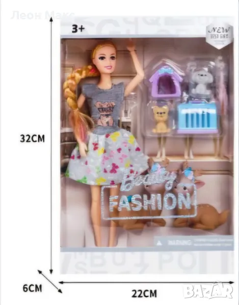 Куклата идва с цял арсенал от домашни любимци – 2 кученца, 2 сърни и аксесоари за тях.