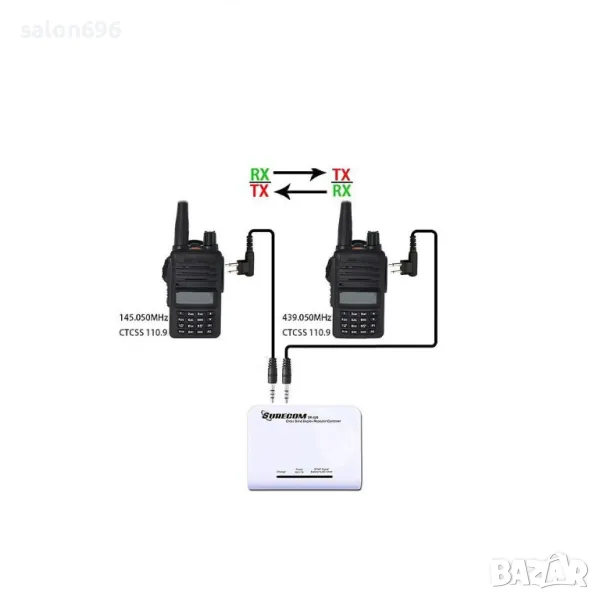 С тях свързвате две радиостанции към уреда, като едната ще предава, а другата ще приема.