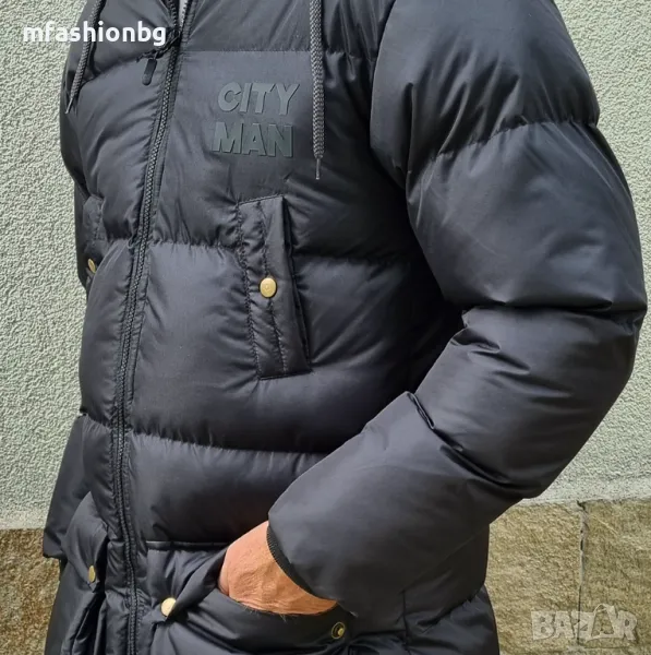 * Елегантно дълго мъжко яке с качулка.