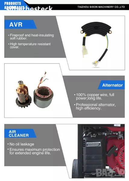 Bison 6.5 е практичен и мощен бензинов генератор за ток, който комбинира високо качество и удобство при употреба. Той е идеално решение за аварийно захранване, гарантирайки надеждна работа и защита на вашата техника.