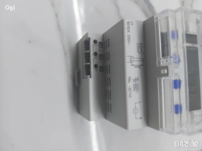 Цифров превключвател за време 110...240VAC Метод на монтаж DIN шина, Брой канали 1, Захранващо напрежение 110 ... 240V, Тип напрежение на захранващото напрежение AC, Честота на захранващото напрежение 50 ... 60Hz, Автономия в години 8, Точност на ден 0,5s, Текстово ръководство на дисплея, Външно програмиране, 60 мин. програма, 24 h програма, Седмична програма, Годишна програма, Празнична програма, Импулсна програма, Цикълна програма, Астро програма, Произволна програма, Часомер, Кварцово управление, Тип контакт Превключващ контакт, Най-кратко време на превключване канал 1 0,016мин, Брой места в паметта 800, Автоматично превключване лятно/зимно часово време, Ръчно управление, Вход с външен бутон, Предварителен избор на превключване, Номинален комутационен ток при 250 V AC 16A, Безпотенциален превключващ контакт, Степен на защита (IP) IP20, Ширина в брой модулни разстояния 3, Ширина 54 mm, Височина 86 mm, Дълбочина 60 mm