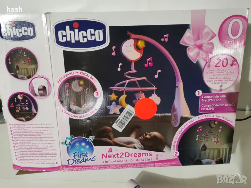 - МОБИЛ ЗА БЕБЕШКИ КОШАЛКИ И ЛЕГЛА Мобилният Next2Dreams е проектиран от Chicco като идеален партньор за бебешко креватче Next2Me, но може бързо да се монтира на повечето дървени кошари