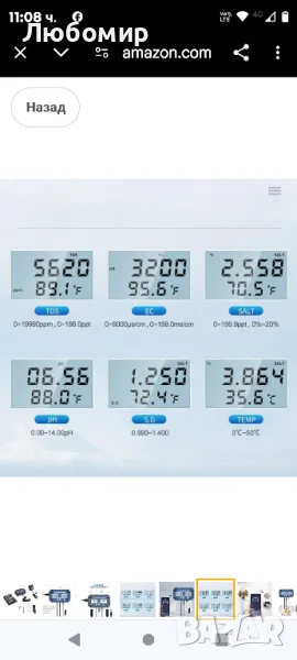 Многопараметърен тестер за качество на водата APP Дистанционно управление PH EC TDS Salt SG