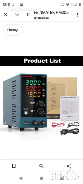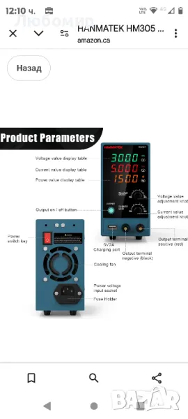 HANMATEK HM305 DC променливо захранване, 0-30V/0-5A регулируемо настолно захранване с 4-