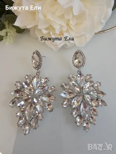 Обеци бели кристали 001, снимка 1 - Обеци - 48441020 Обеци бели кристали 001, снимка 2 - Обеци - 48441020 1/2
