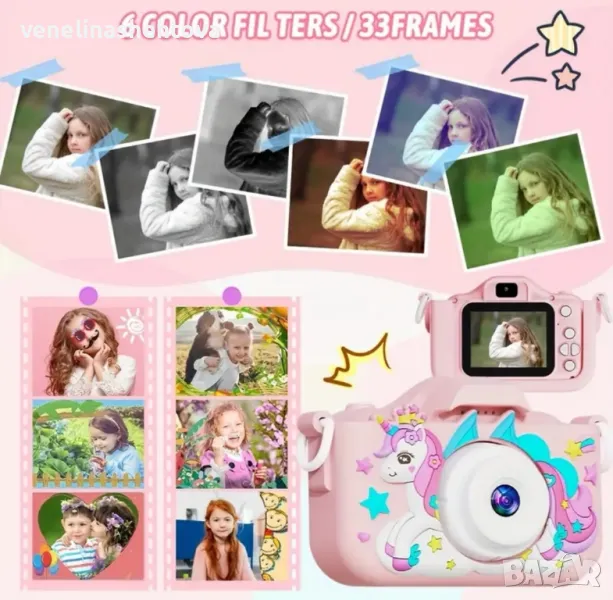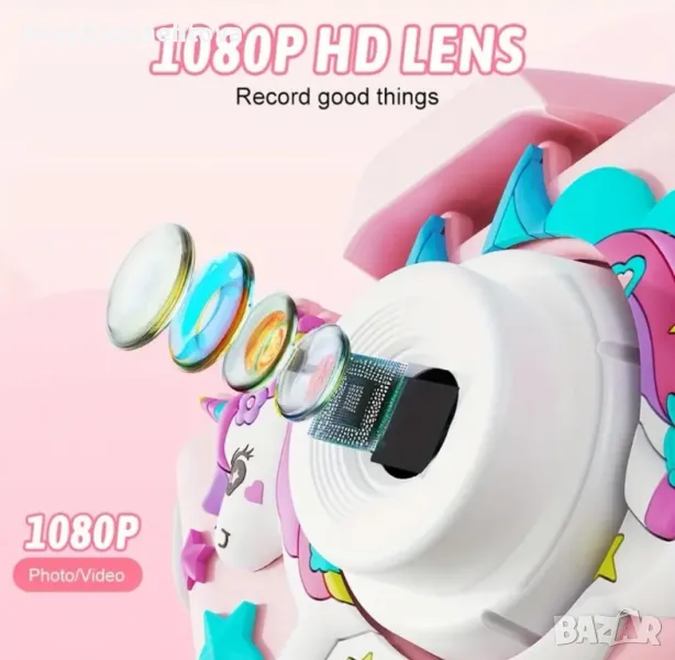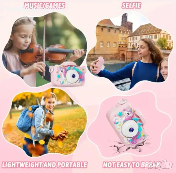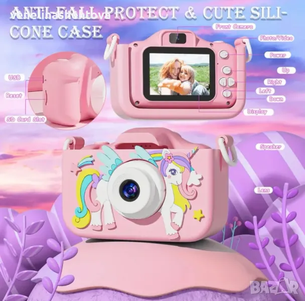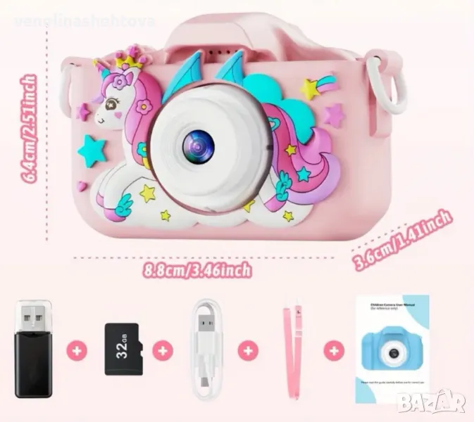 Детски фотоапарат с еднорог 32GB sd карта противоударен игри