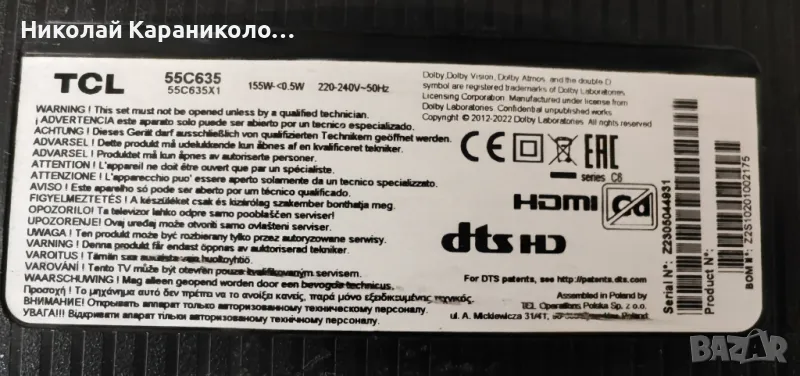 TCL 55C635 за части по причина-счупена матрица/LVU550NDLL CS9W02 V1/.Редовни съответно: