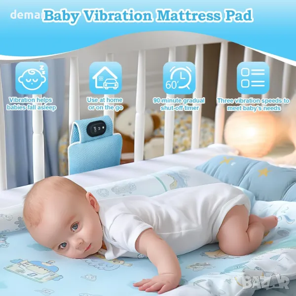 Залъгалката за сън осигурява нежни вибрации, които имитират родителски потупвания, насърчавайки дълбокия сън и подпомагайки растежа. С три регулируеми режима на вибрация, той отговаря на индивидуалните предпочитания на бебето и помага за успокояване на коликите и метеоризма. Неговият 90-минутен прогресивен таймер постепенно намалява вибрациите за непрекъснат сън, идеален за късни нощни събуждания. Проектиран за преносимост, той разполага с опция за бързо зареждане Type-C и пасва на креватчета, колички и столчета за кола, което го прави идеален за дома или пътуване. Подходящ за новородени, той насърчава чувството за сигурност, като пресъздава утешителни звуци, подобни на утробата.
