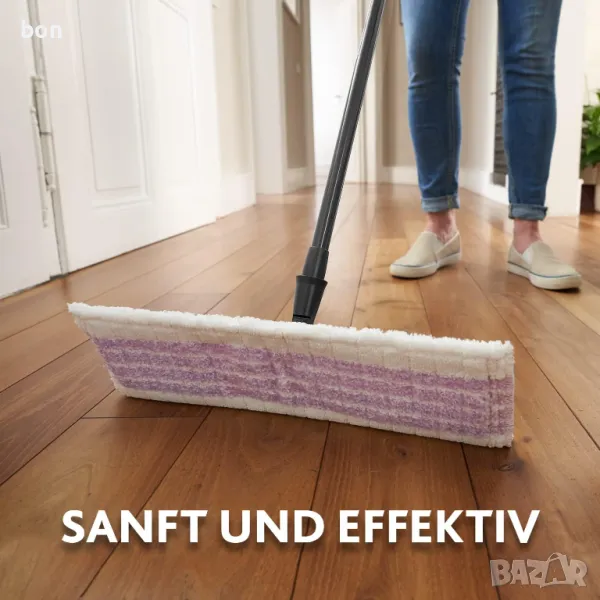 Белите влакна от 100% рециклиран микрофибър избърсват пода и го полират
