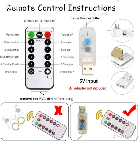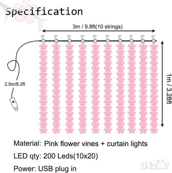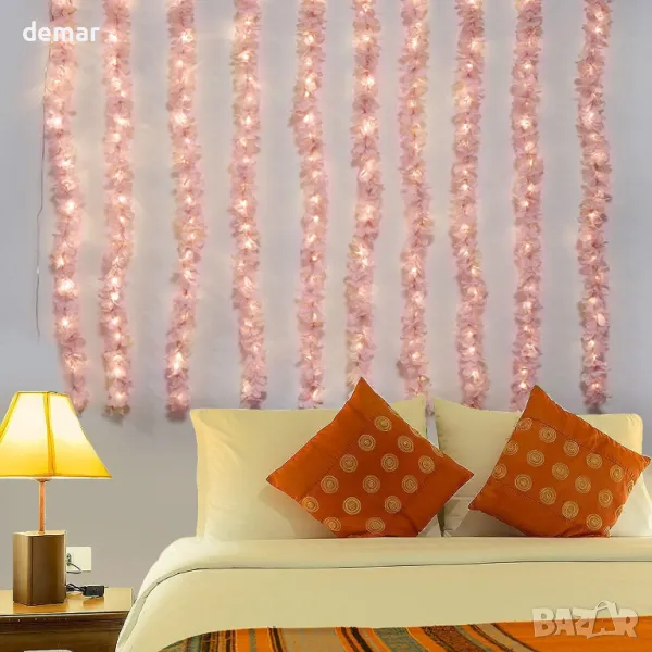 Очарователна комбинация от светлини за завеси и розови гирлянди от вишнев цвят, включваща 10 гирлянда с топли бели LED светлини, увити около тях за светещ, мигащ ефект. Комплектът включва дистанционно за лесно регулиране, предлагащо 8 режима на мигане, затъмняване и функция таймер. Перфектен за създаване на романтична или причудлива атмосфера, независимо дали у дома, на събития или дори на къмпинг. Лесни за окачване с включените куки, гирляндите не изискват поддръжка и няма да избледнеят или изсъхнат. Захранвани от безопасна USB връзка с ниско напрежение, светлините остават студени и универсални за употреба на закрито или на открито.