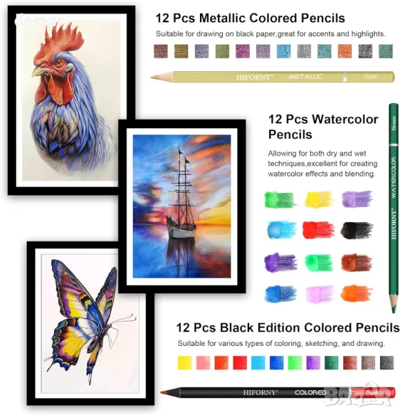 HIFORNY 100 бр. Комплект за рисуване и скициране, професионални артикули за рисуване