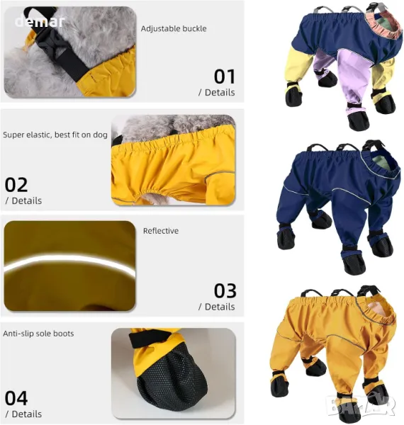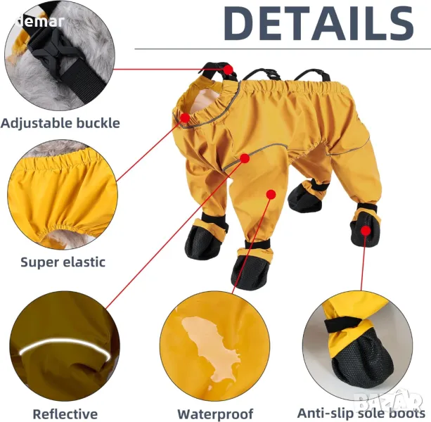 Тези водоустойчиви, противоплъзгащи ботуши за кучета са предназначени за средни до големи кучета (XL - гръдна обиколка: 80 см, дължина на крака 30 см, обиколка на врата 60 см), осигурявайки защита на лапите и комфорт по време на дейности на открито. Изработени от издръжлив PU плат, те поддържат лапите сухи и чисти при дъжд, сняг и мокри условия, като същевременно са лесни за почистване за повторна употреба. С регулируеми презрамки и дизайн на тиранти, те осигуряват сигурно прилягане и предотвратяват изплъзване или падане. Ботушите предпазват от груби повърхности, остри предмети и студено време, като същевременно предлагат пълно покритие на краката за повишена безопасност и чистота. Перфектен за разходки, туризъм, пътуване и къмпинг. Осигурете правилното прилягане, като измерите гръдната обиколка и дължината на краката на вашия домашен любимец преди покупка.