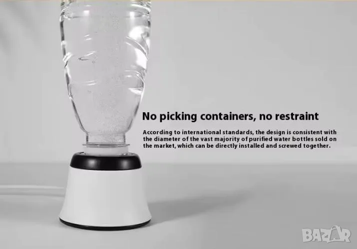 Това е просто преносим водороден генератор за вода, не съдържа бутилки, така че е много малък, подходящ за пътуване и носене. Може да се адаптира към повечето бутилки за минерална вода на пазара. Разбира се, ние сме го оборудвали и с по-малък адаптер за по-широка гама от приложения.