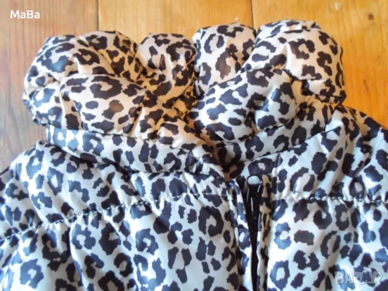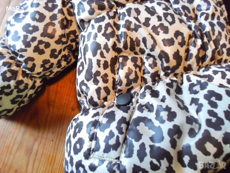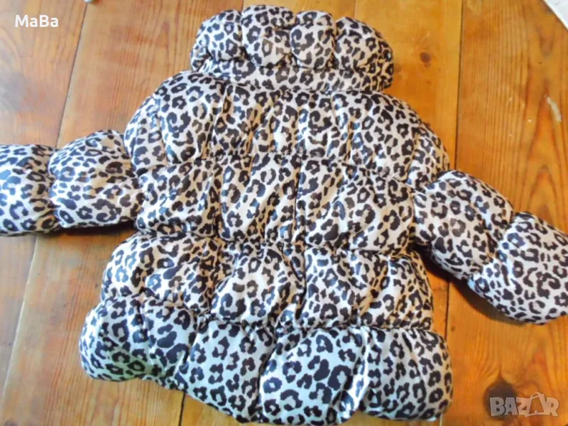 Дебело якенце-бомбър в нежно розовокафяв леопардов принт. Два странични джоба с тик-так копченце. Голяма шал-яка. Ватирано. СЪСТАВ:100%Полиестер.
