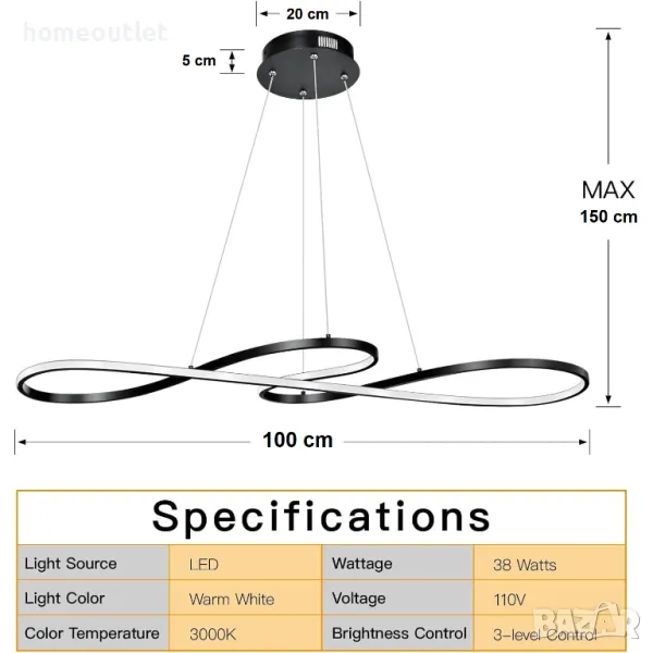 Изработен от висококачествен метал и матова черна боя, този LED полилей привлича вниманието, щом го видите.