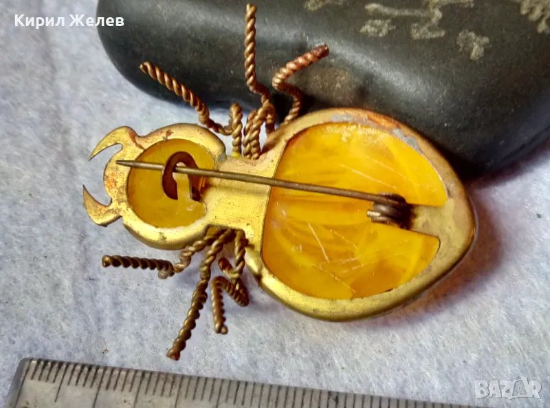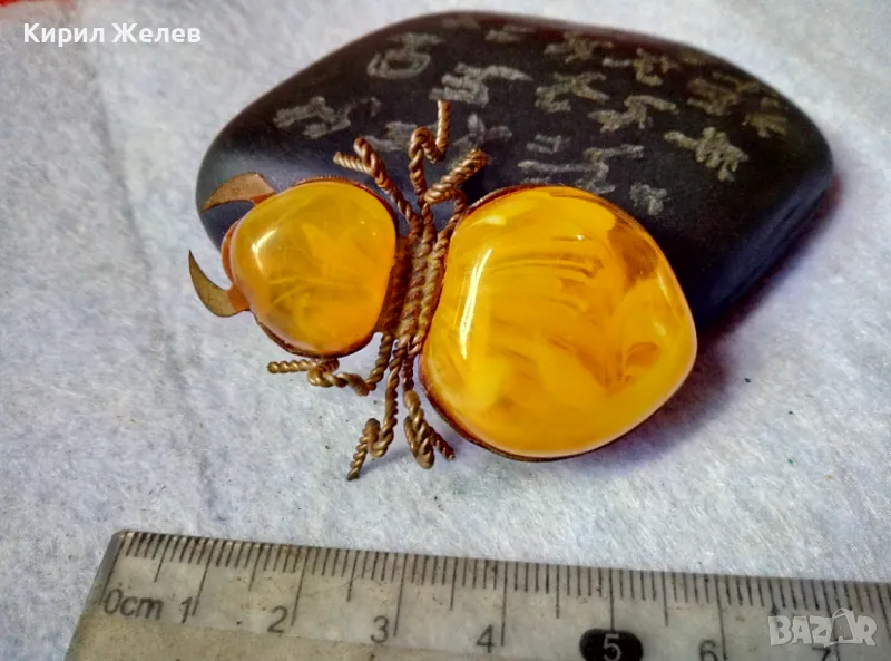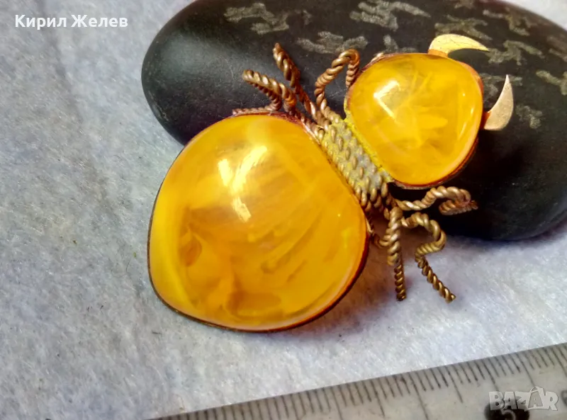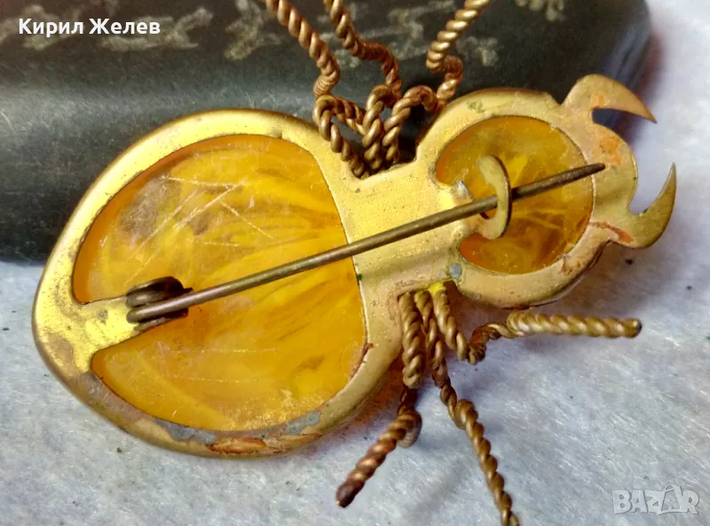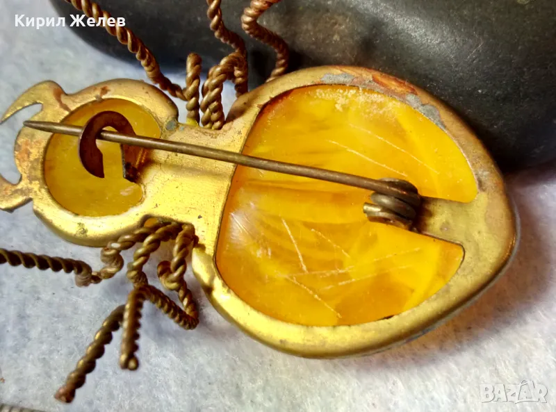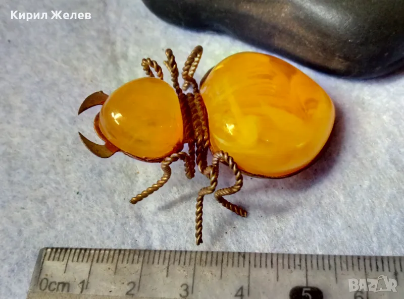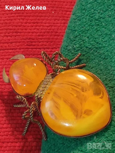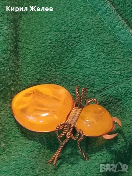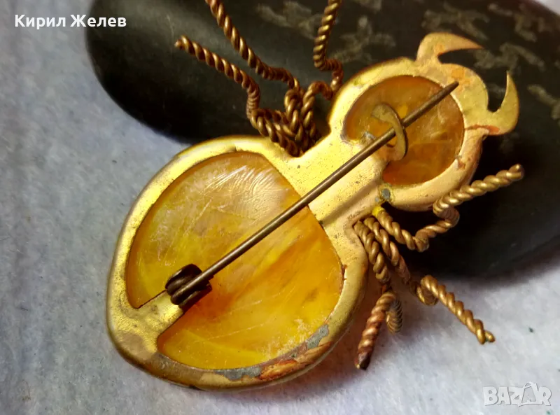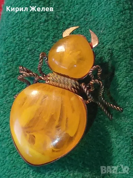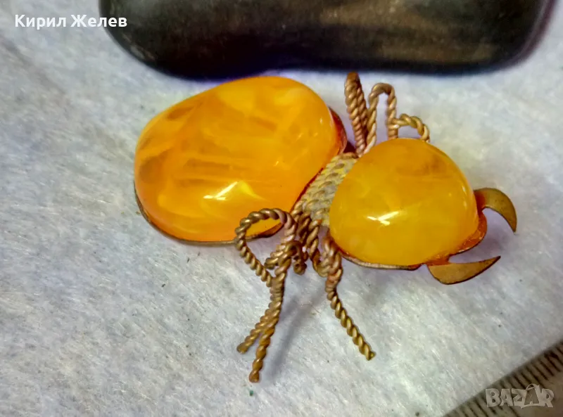 Стара ПОЗЛАТЕНА МЕДНА ФИГУРАЛНА КЕХЛИБАРЕНА БРОШКА БРЪМБАР Ръчна МАЙСТОРСКА ИЗРАБОТКА 48883 → Обява 48444573