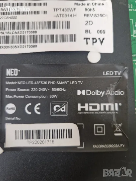 Стойка крачета за ТВ NEO LED43FS30 FHD SMART LED TV → Обява 48444625