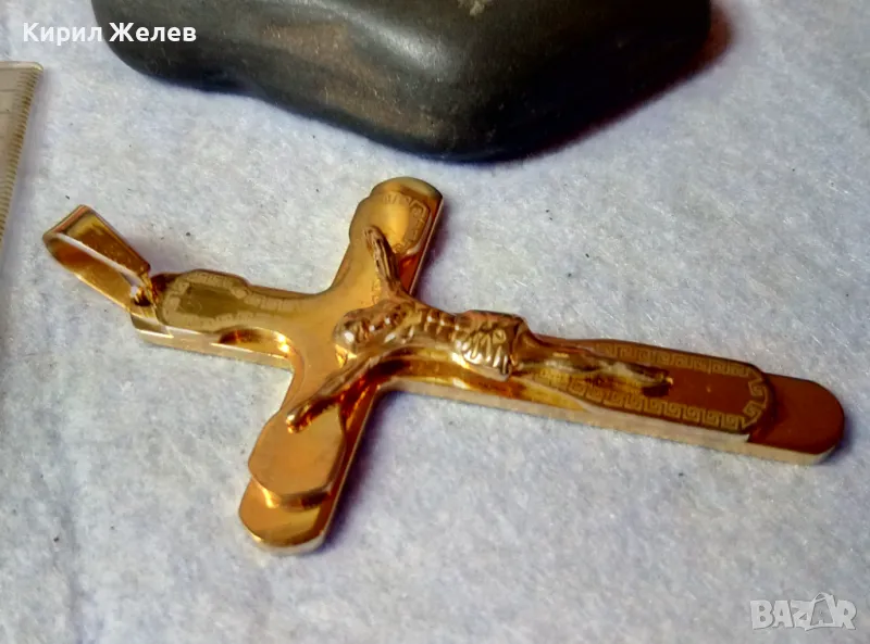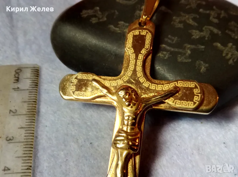 ПОЗЛАТЕНО НАГРЪДНО РАЗПЯТИЕ КРЪСТ от БЛАГОРОДНА СТОМАНА с ОРНАМЕНТИКА 45603 → Обява 48444866