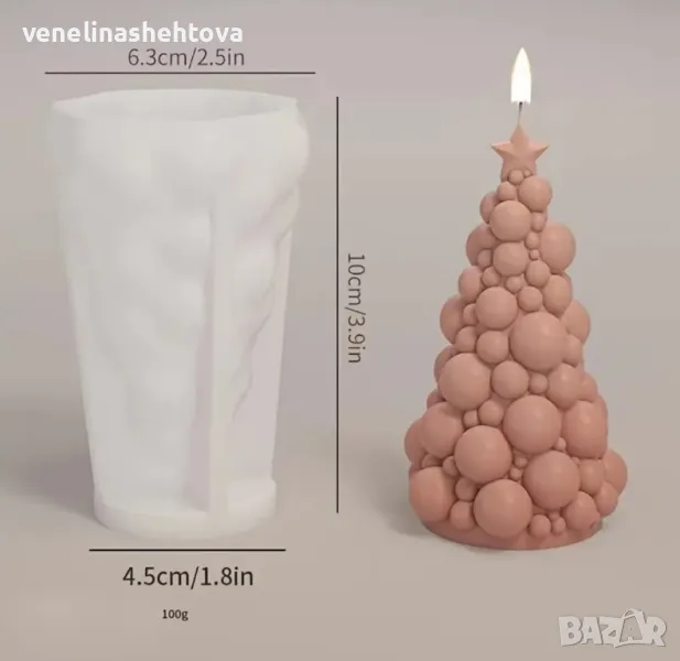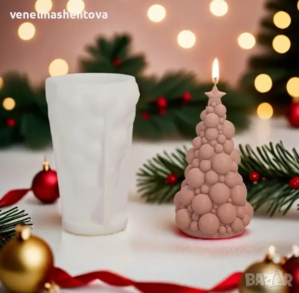 3D Голяма елха с топки Силиконов молд форма за свещи гипс сапун КОД 4361 → Обява 48446095