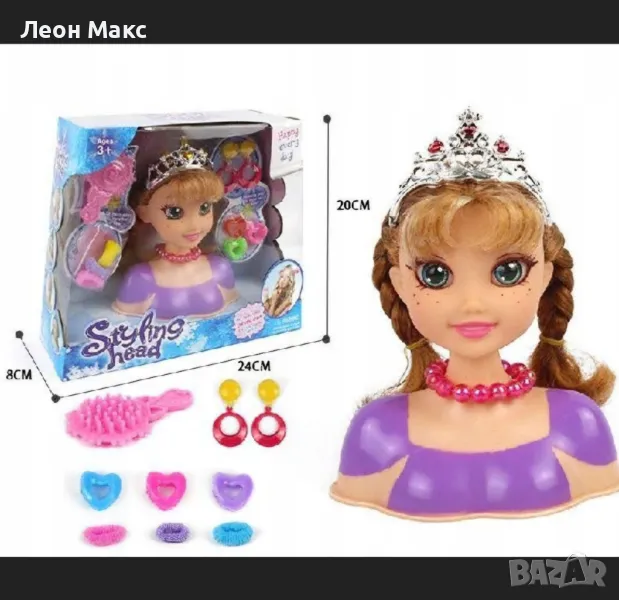 Глава на кукла Принцеса за разресване с корона, в комплект с аксесоари.