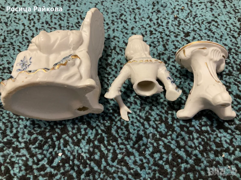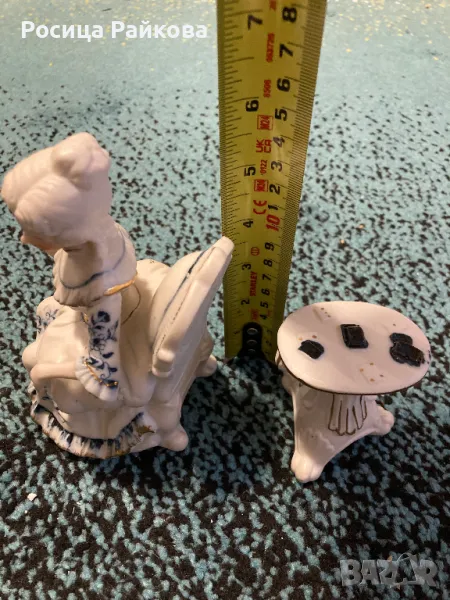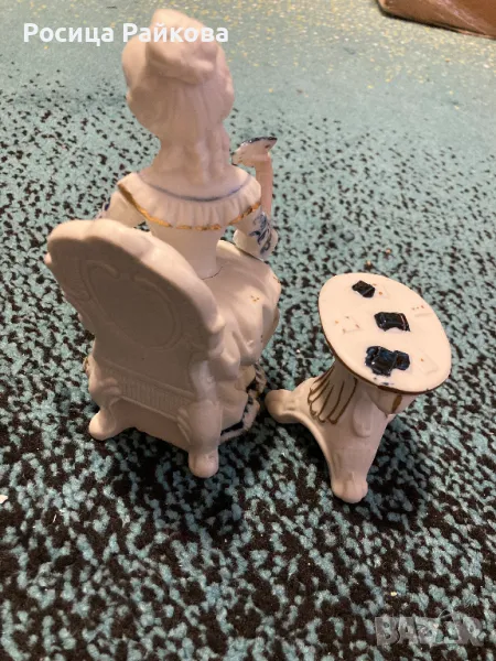 Две отделни фигурки са - жена играеща карти и масичка с карти . Женската статуетка е счупена, вижда се на последната снимка, но много лесно може да се залепи.