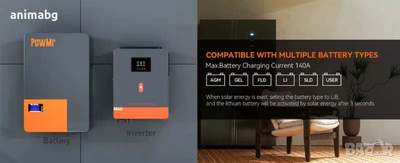 Съвместим с 48V литиеви, оловно-киселинни и дефинирани от потребителя батерии, комбинацията от MPPT соларен контролер за зареждане и AC батерия осигурява бърза и оптимална работа. Увеличете максимално вашата батерийна система със 160A заряден ток. Изпитайте усъвършенстван контрол на мощността в компактен дизайн.