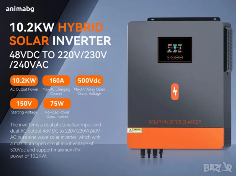 Ефикасен инвертор с чиста синусоида от 10,2kW позволява безпроблемно двупосочно преобразуване между 220V DC и 48V AC мощност, постигайки до 95% ефективност. Гарантира съвместимост с мрежата, соларните панели и генераторите. Персонализирайте обхвата на входното напрежение и тока на зареждане на батерията чрез LCD настройката за оптимална производителност.