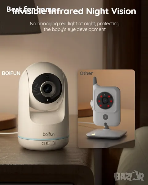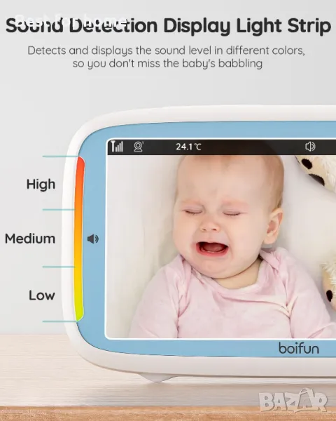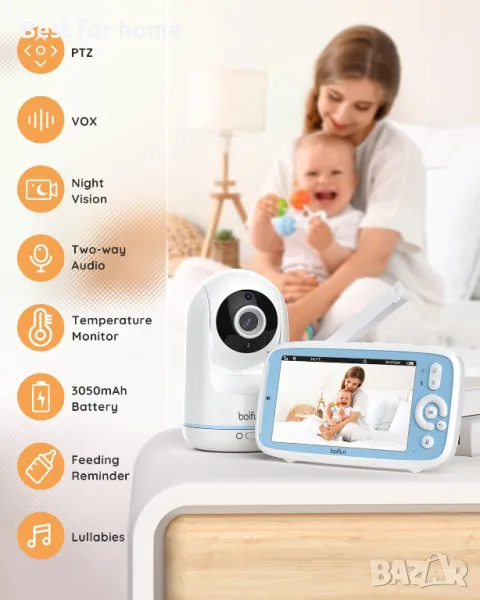 [Гъвкави функции и 3050 mAh батерия] : Мониторът за бебешка камера Boifun предлага гъвкав държач за монтаж и различни функции, като визуален светодиод за обем, напомняния за хранене, мониторинг на температурата, приспивни песни, връзка с обхват от 1000 фута (300 метра). В режим VOX, Животът на батерията от 3050 mah дори може да издържи до 20 часа.