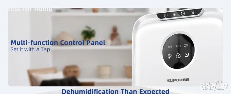 влагоуловител има 4 сензорни бутона и LED дисплей с висока разделителна способност. Лесен за използване и лесен за използване. Той предлага 2 режима на изсушаване (ден/нощ), персонализирана околна светлина и функция за таймер. Стилният и удобен за употреба дизайн допълва декорацията на вашия дом и отговаря на нуждите ви от обезвлажняване у дома.