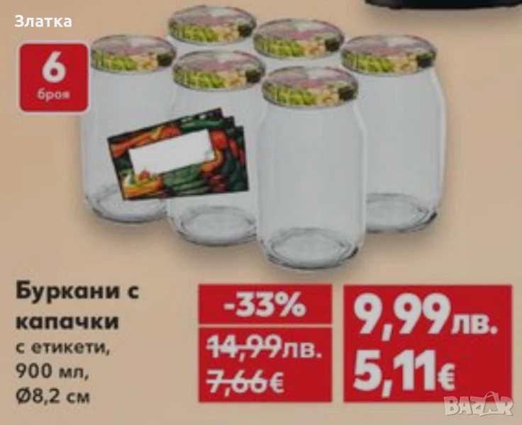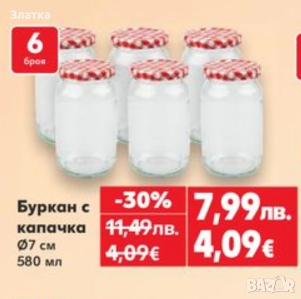 Продавам най-различни по обем буркани, най-вече 700 - 800 мл, един литър и други... Общо бурканите са около 100 броя, с винтови капачки. Цена само по 20 стотинки за брой, заедно с капачката, тоест - всичките за около 20лв. Не са ползвани, след като са закупени с продукти от магазина. Още снимки при поискване. От примерните снимки се вижда, че един буркан в магазина струва над един лев - 1.50...! Може бартер за злато - 130лв. за един грам! Ако се купят повече неща и от другите ми обяви, естествено, че ще има МНОГО ГОЛЕМИ отстъпки! За Кюстендилска област е възможна безплатна доставка.
