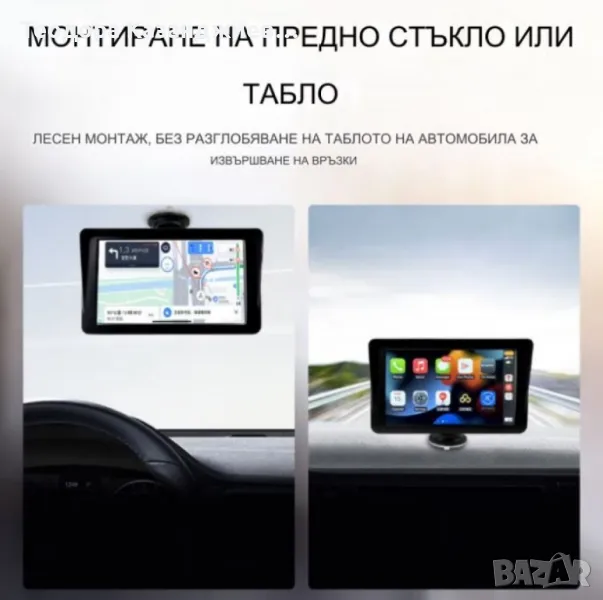 Монитор за кола, 7 инча екран, 1024x600 резолюция, MP5, Carplay, Android Auto, GPS, Bluetooth, Радио → Обява 48450984
