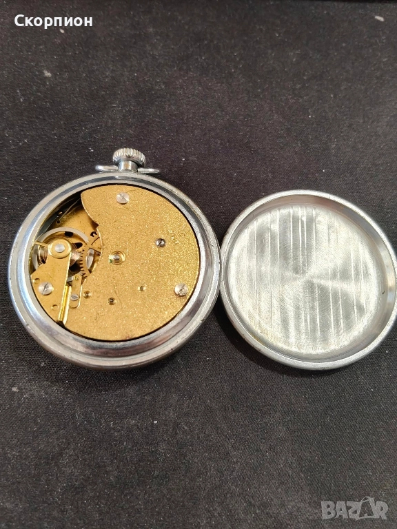 Часовникът е почистен, смазан и сервизан и профилактиран от часовникар. Отличен външен вид - от колекция, работещ и поддържащ точно време, в добро състояние. Закупен е лично от мене от антикварен магазин в Западен Берлин, Германия за скромната сума от 15 евро.