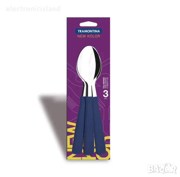 Сет 3 броя Прибор Tramontina (Бразилия) - нож, вилица или лъжица, синя дръжка